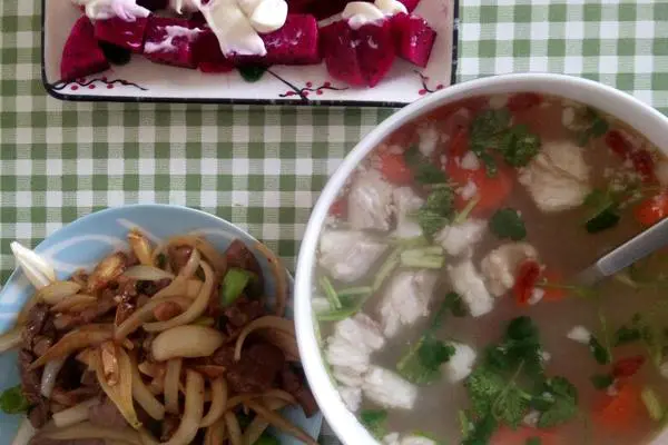 西芹豆干 豆角肉沫橄榄菜 鱼羊一锅香