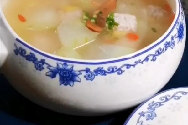 冬瓜丸子汤是一道美味可口的名菜,浓香不油腻、喷香可口,属于粤菜系。 冬瓜性味甘、...