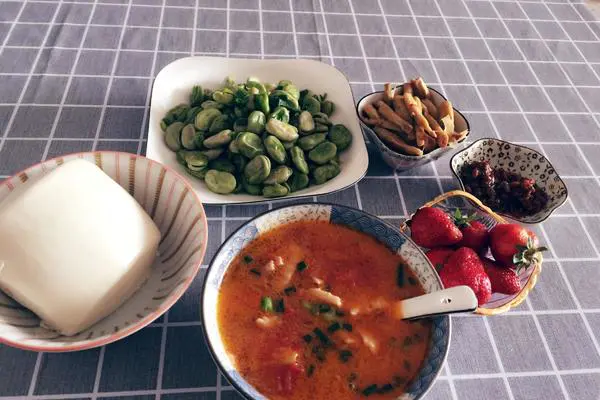 馒头蘸黄豆酱和鲜笋酱,来碗酸鱼汤,再配些时令的蚕豆和卤笋,好吧,满足