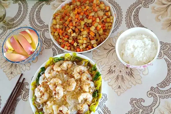 有来吃的吗?炒三丁,蒸娃娃菜粉丝虾仁