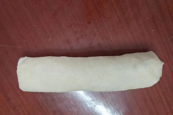 今天有空在家,买一些食料来包薄饼。 将这些食材放在面皮上 两边对折,下面部分卷上...