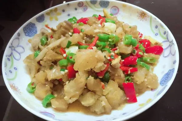 剁椒鱼头 爆炒牛筋 拌凉皮 爆炒空心菜梗 红烧冬瓜 土鸡蛋葱花汤
