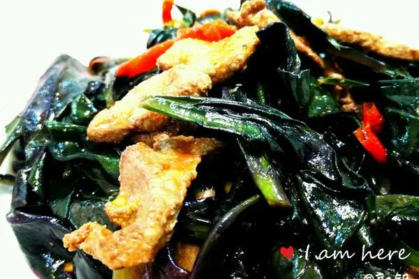 血皮菜炒猪肝 紫贝菜炒猪肝