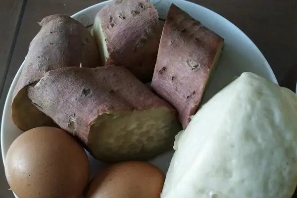 :现在基本每天早晨都有鸡蛋,红薯或者紫薯,再加玉米
