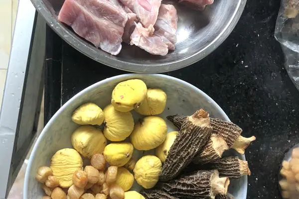 准备食材、羊肚菌、排骨、瑶柱、陈皮一小块