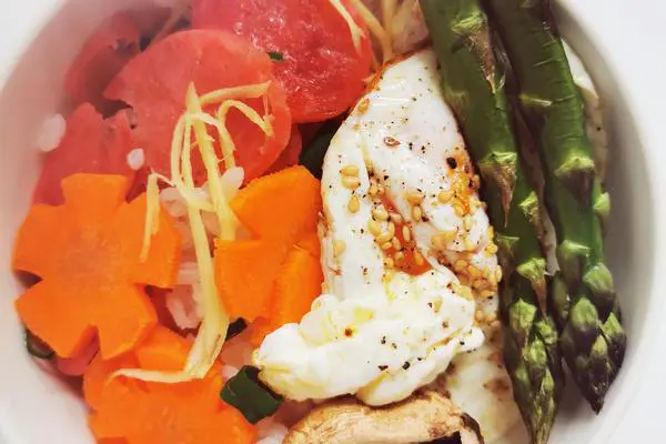 8、口蘑、芦笋入烤箱烤制10分钟。