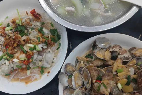 晚餐 蒜蓉粉丝生蚝蒸 沙茶炒花甲 皮蛋瘦肉青瓜汤