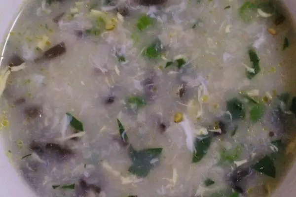 饿了就随便抓起来东西做的,也不知道是个啥。麦片,山药粒,肉粒,木耳,菠菜,鸡蛋煮成的😓