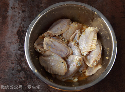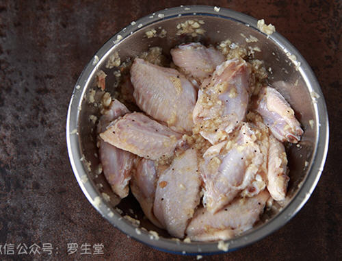 腌完鸡翅的蒜茸一定要用清水稍洗一下挤干了再炒,否则容易有些许苦涩味道。