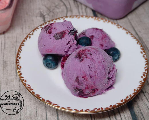 蓝莓冰淇淋这款简易版本的冰淇淋,少了奶与蛋的步骤,主要即是油脂与水果浆,因此油脂的比例高,会比较油腻,但糖的部分可自行斟酌,也可以搭配气泡水享用(特调的风味)完全不含化学色素的冰淇淋,偶尔浅尝几口,也是一番滋味!