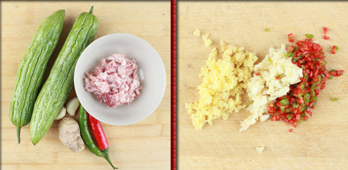 1、这道菜的难点:凉瓜的酿和煎