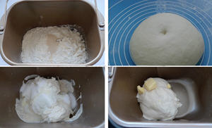1.关于配方。面包机做面包,配方不能完全照搬,尤其是液体含量,一般情况下,要根据面粉吸水性不同、季节不同、温度差异而调整变换,水或者牛奶要适当留10克左右,和面过程中可以注意观察,适当调整。而且,不能一股脑把所有材料都倒入面包桶,如果全程使用面包机的程序,可以先不加黄油,启动一个和面程序,然后再加入黄油后启动全程面包机的程序。