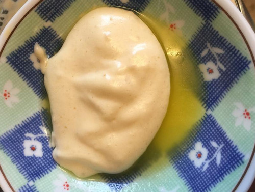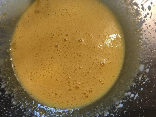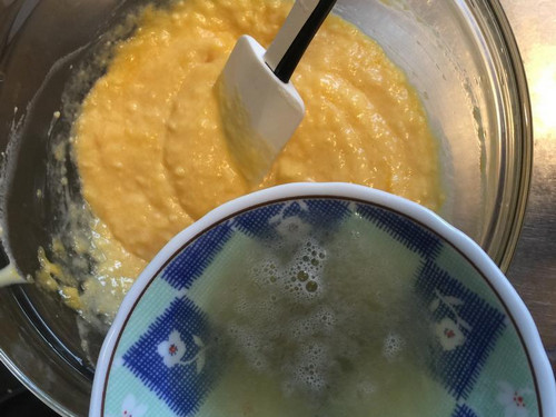 3、拿一点(2)到融化奶油,搅拌均匀再倒回去。