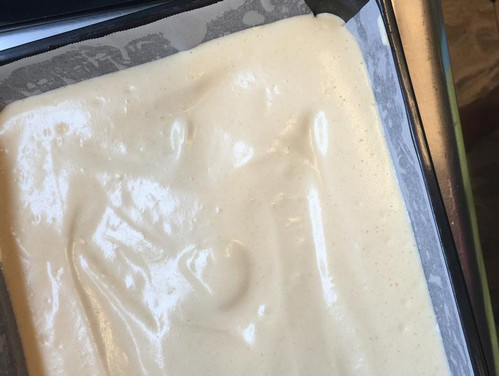 4、倒入烤盘(22x33cm烤盘),180度C,18-20分钟,烤完后移出放凉备用。