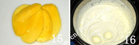一、内馅用的芒果切薄片会比切颗粒的效果好,层次更分明。