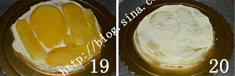 注:一般是一层淡奶油和一层果肉相间,我一共叠了6层果肉,用了14张饼皮。