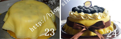 23、最后涂抹奶油后把最大的饼皮小心覆盖最上面,图23.