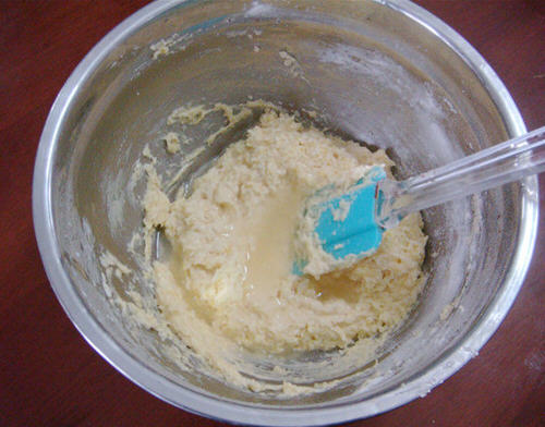 6、用刮刀切拌混合,再加入柠檬汁,搅拌均匀。