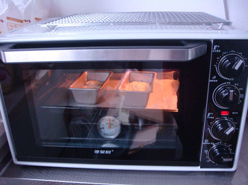 8、放入预热好的烤箱,中层180度30到35分钟,蛋糕顶部焦黄,牙签从裂缝中插进去没有带出湿面糊就可以了,根据自家用的模具大小适当调整烤的时间吧。