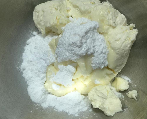 2、乳酪糊:奶油乳酪放室温软化 PS.这张照片是已经加入糖粉了,也可用砂糖代替。