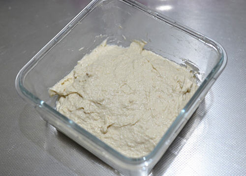 7、 低速搅拌几下至材料分布均匀,收圆盖保鲜膜进行基础发酵。