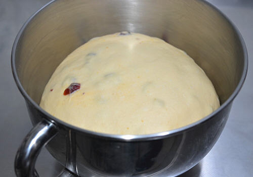 面团材料:高筋面粉600g,鸡蛋152g,牛奶170g,细砂糖120g,盐6g,奶粉45g,即发干酵母5g,无盐黄油45g,车打奶酪120g,蔓越莓干200g。