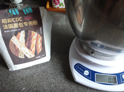 高粉 300g、麦芽精 1g、水 210g、低糖酵母 1.2g、盐 3g