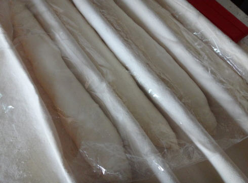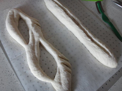 所以,做好一根法棍,难度可不一般。掌握了标准,没啥多说的,就是撸起袖子加油干,多练手,总是会有进步的。有时候,枯燥的棍子还能有些变化,我这次就一下子做了3种,基础的面团方子都是一样,整形上做些变化,非常有乐趣。