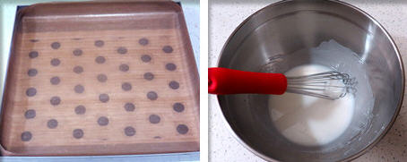 1、波点图案提前打印好,垫在铺在28*28的烤盘油布下面