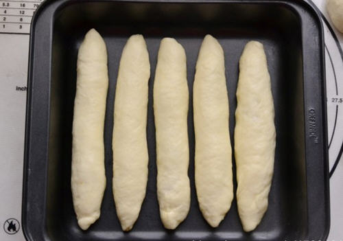 6、卷起成长条状、放在温暖湿润环境进行二次发酵,大约30分钟就差不多了