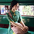 将包好的水油皮面团收口朝上,手掌压扁,用擀面杖把面团擀成长舌状。