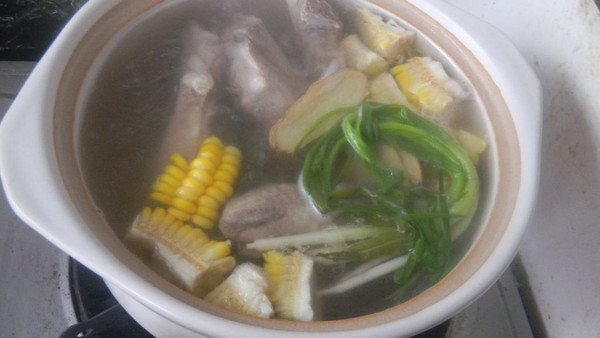 玉米也切块,姜切片,葱打结