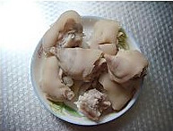 猪蹄切块洗干净,黄豆提前浸泡上。