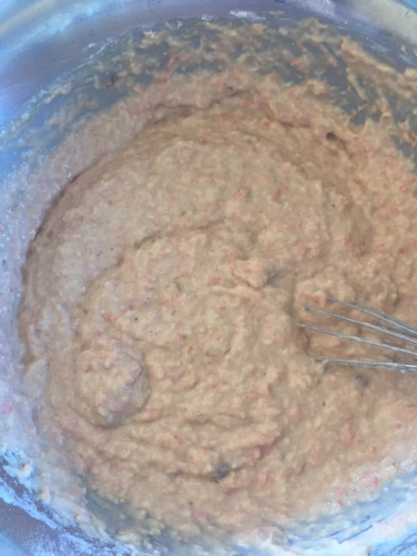 同样红萝卜也洗净擦成泥,最后擦时一定小心别伤到手