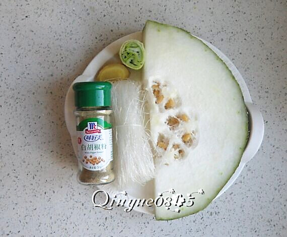 准备:冬瓜、粉丝、葱姜、黑或白胡椒粉等。