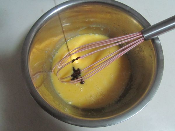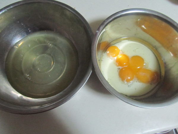 同时将蛋黄放入其中,蛋清打入无水无油的容器中;