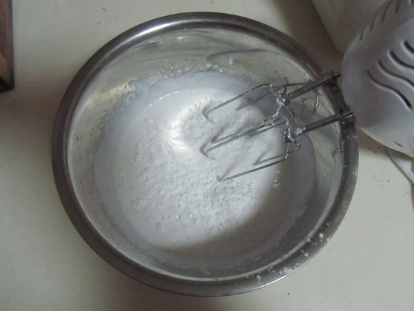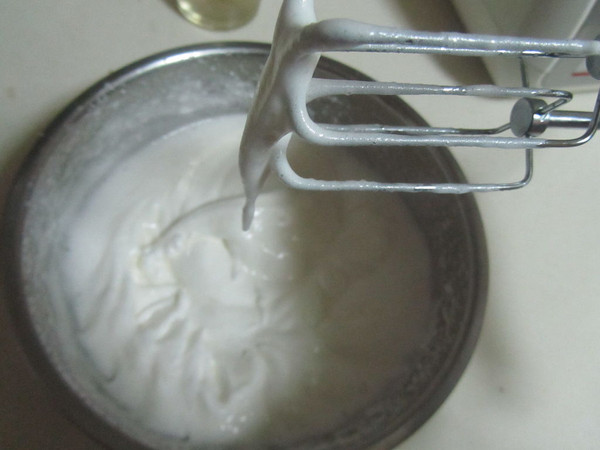 在打发好的蛋清中加入几滴白醋, 再打发一下;
