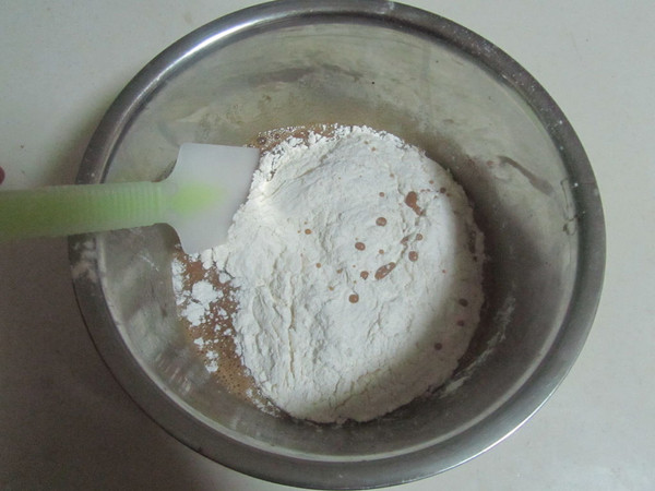 将打发好的蛋清的三分之一倒入混合好的蛋黄液中,将它们搅拌均匀; 11. 1