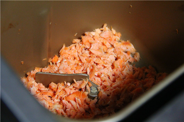 大约50分钟后,三文鱼变得很松散,基本完工,再过5分钟停止工作,撒上些白芝麻