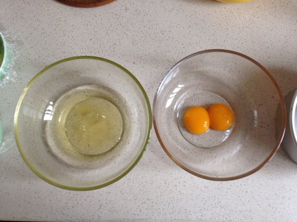 将蛋黄与蛋清分别打入两个干净的无油无水的碗里!