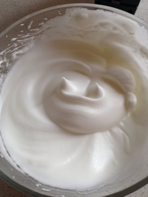 当蛋清打发到可以立起1cm左右的小尖头不倒时,蛋清就打发完成了。