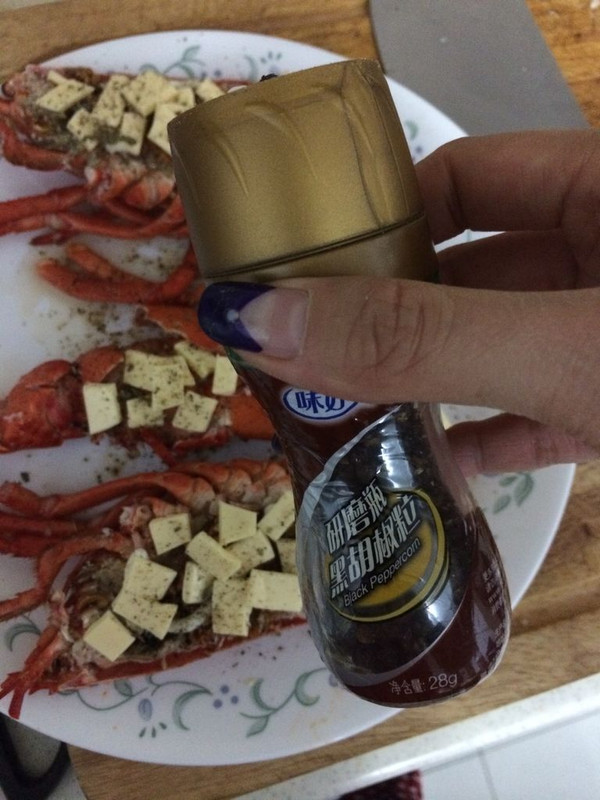 将蒜蓉均匀铺在龙虾肉上
