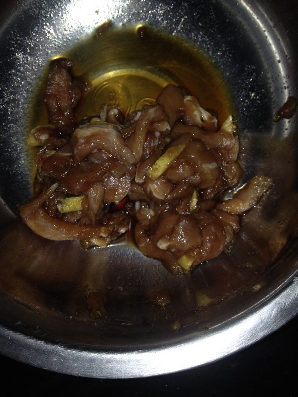肉先用生抽盐姜丝腌制