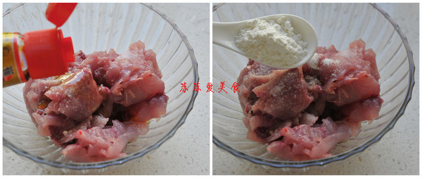 倒入半只蛋清充分抓匀腌20分钟,锅里热油炸至金黄即可。