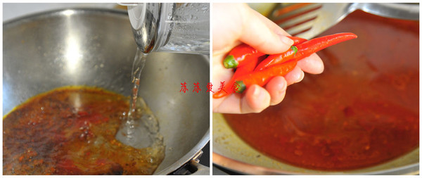 另起锅放油,炒香郫县豆瓣酱,再倒入蕃茄酱。