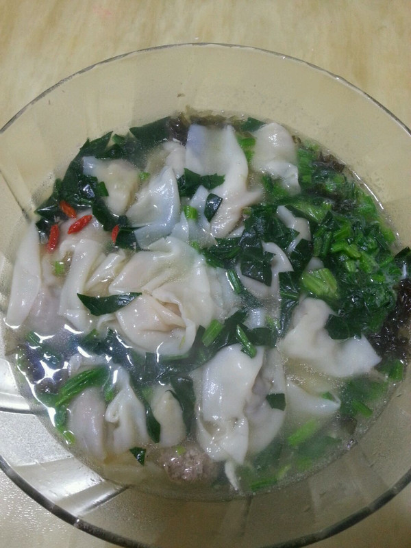 包好的云吞。锅里做水,水开后下入云吞,可加些菠菜碎同煮