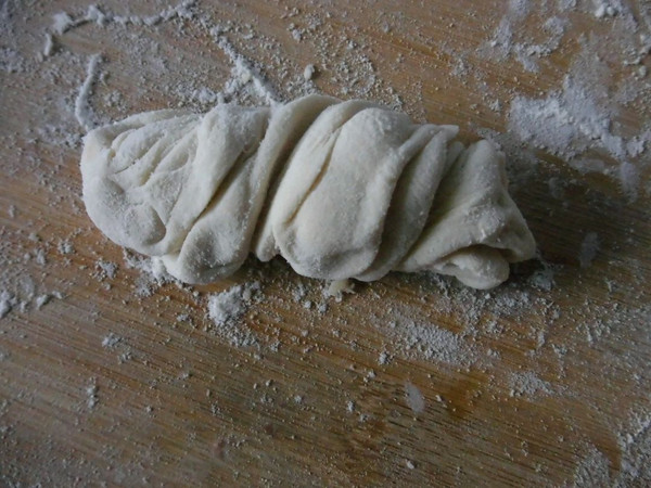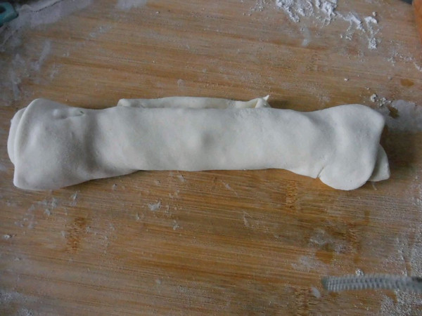 将葱油均匀的抹在大饼上,并将边缘叠起来
