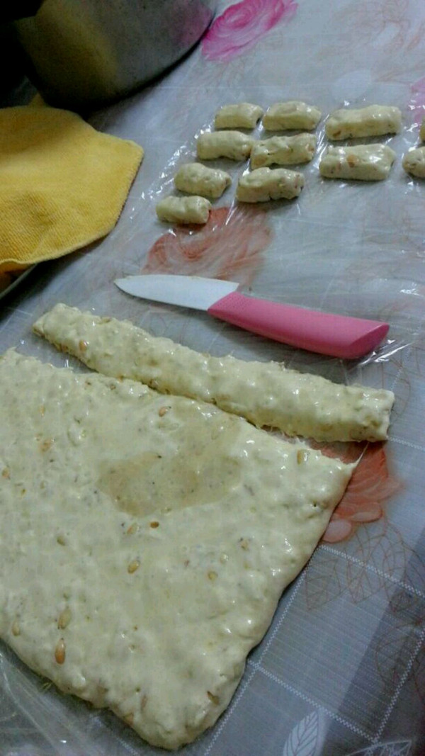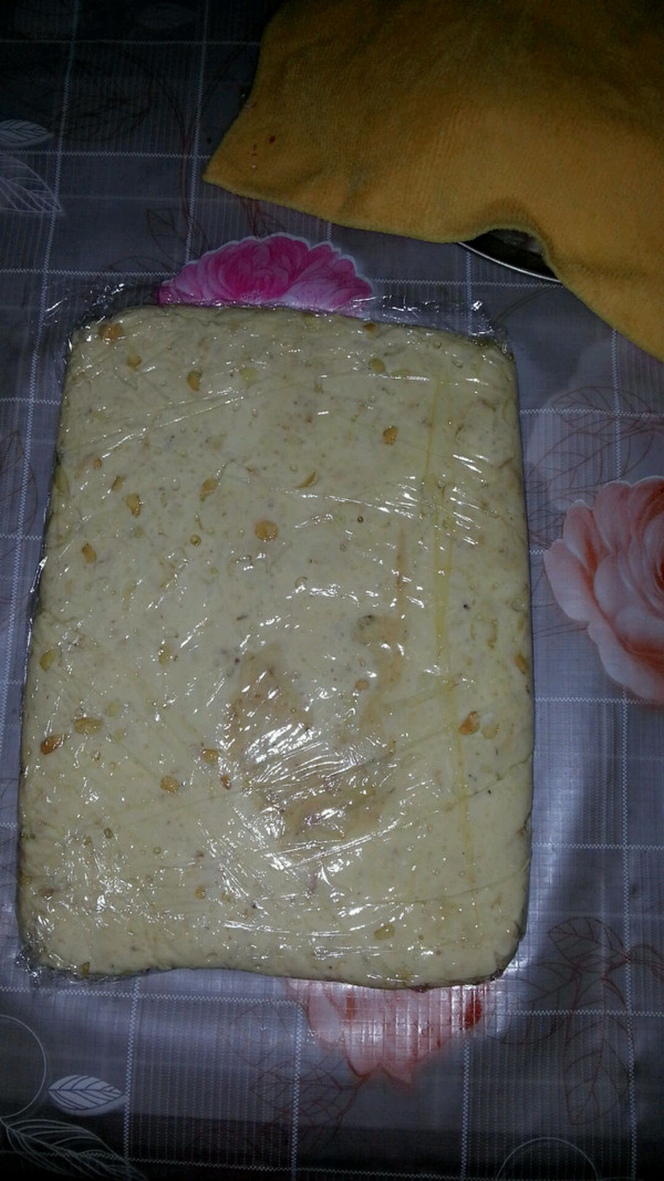经过没有拍,在这里文字说明一下,先小火放黄油化开,再放棉花糖拉丝,接着放奶粉拌匀,再放花生坚果(看自己喜欢),彻底拌匀,立即出锅压平,待凉切成长方形即可。就怎么简单