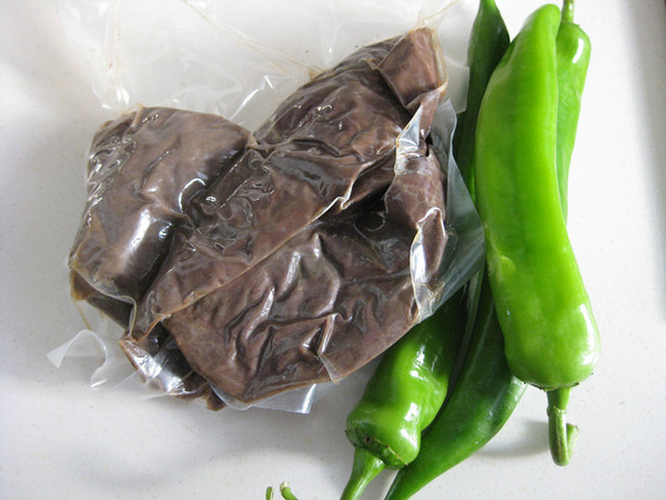 尖椒洗净切小段;猪肺清水冲洗一下,切片;葱姜切片;