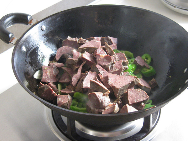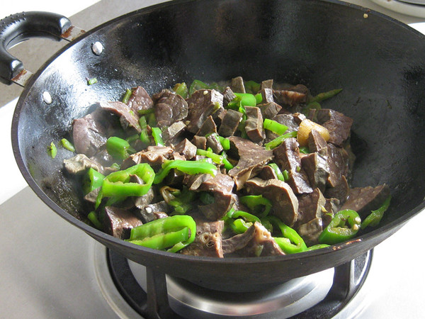 翻炒尖椒有少许软榻;放入猪肺;